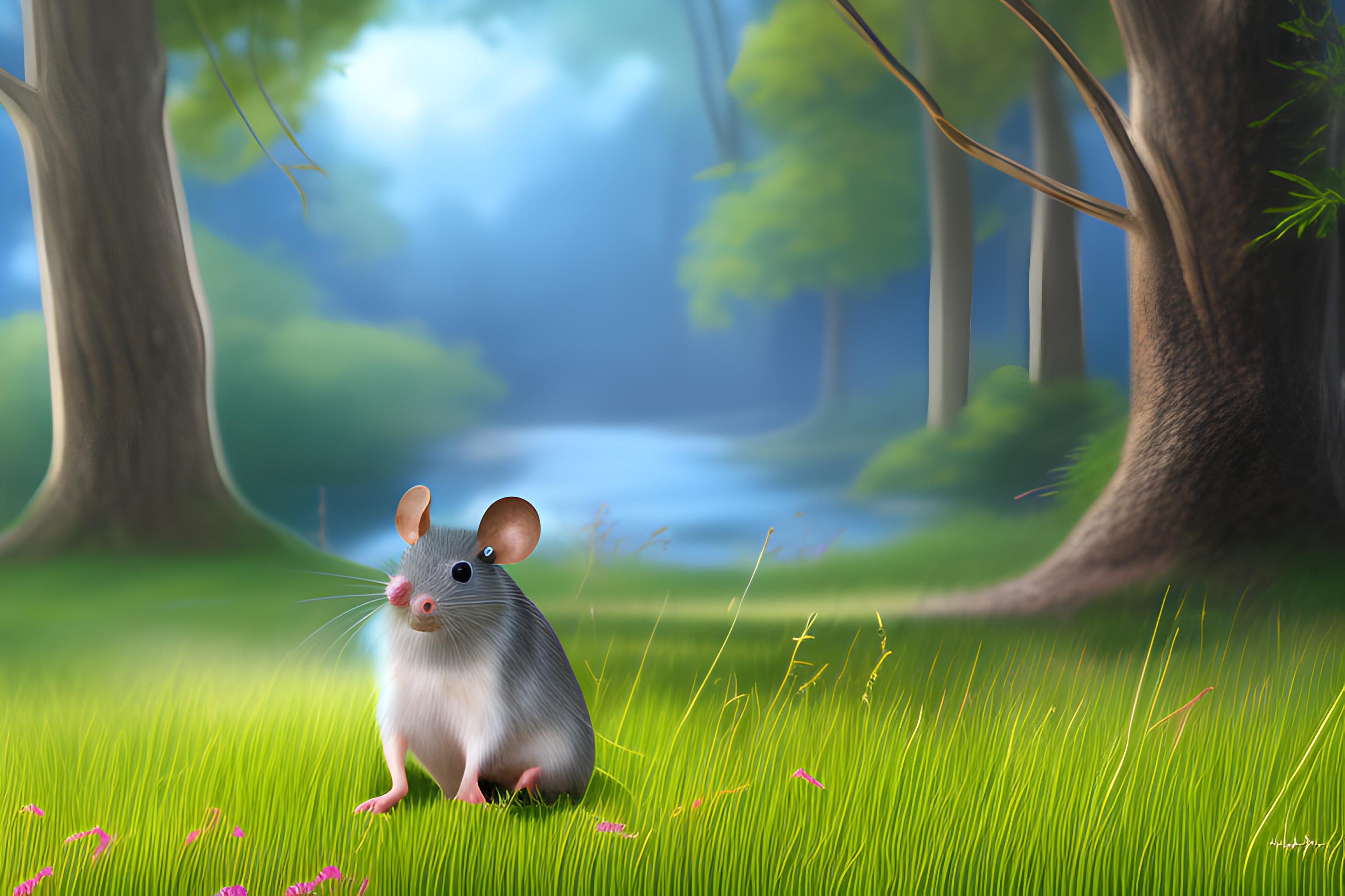 The mouse is sitting in the field